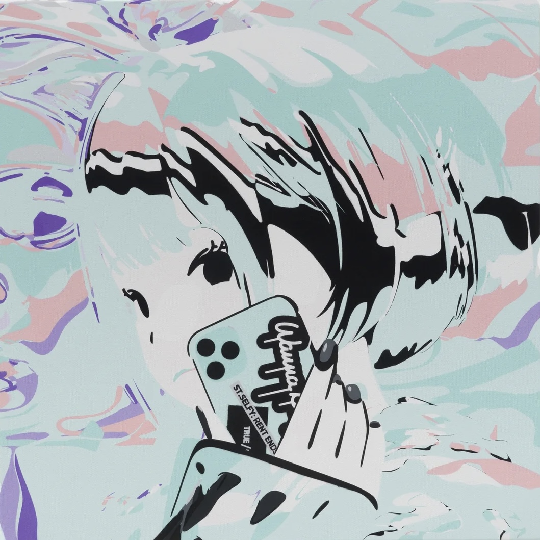 Yamaguchi started his career as an artist influenced by the music, fashion and design of Tokyo in the 90’s. With the theme of “Trans-reality”, he continues to question what reality is by painting “Cool & Cute” selfie characters. He is doing borderless activities such as collaborating with the apparel brand X-girl, ReZARD. His major solo exhibitions include “TRUEFALSE” (Tokyo 2023), “SELFY: Complete Edition” (Hongkong 2022), “stay pixelated” x MAKERS SPACE (Tokyo 2022), and “SELFY” (Tokyo 2021).