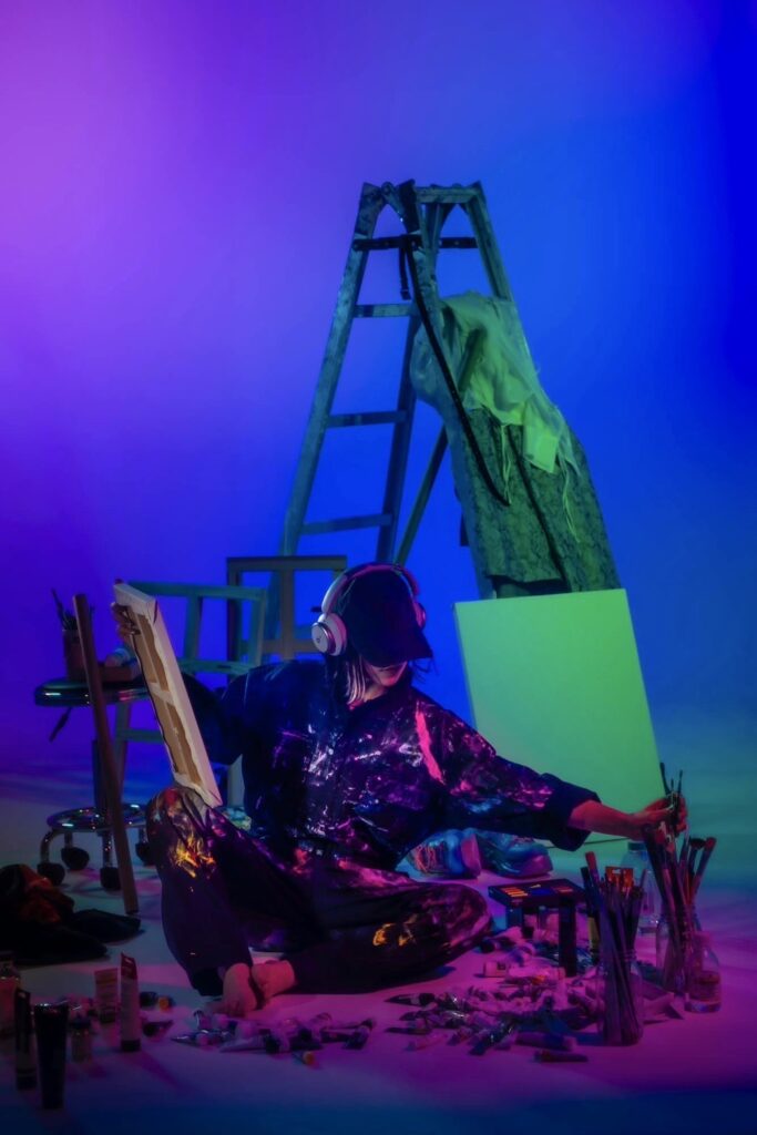In addition of Oil or Acrylic on canvas, she also creates digital art, as well as works using mirrors and scrap wood as supports.