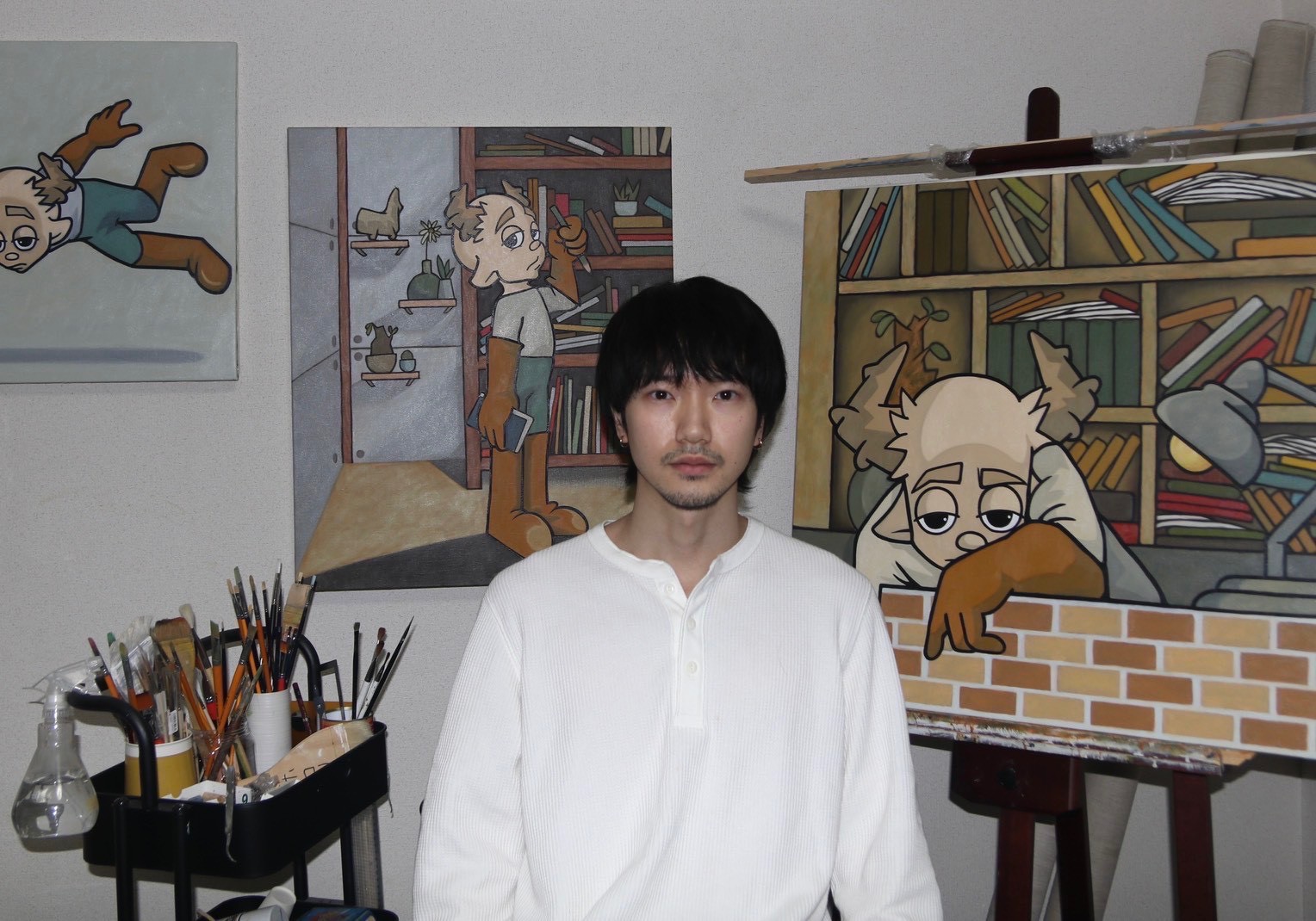 Influenced by his father, who was an oil painter, he has been familiar with painting since childhood. He has a mixed background of Japan, the UK and India, having been educated at an international school where he was exposed to different cultures, as well as in Japanese public schools. After graduation, he worked in various jobs including a rent-a-car shop, finance, bartending, newspaper delivery, and taxi driving. He began his career as a painter in 2020.