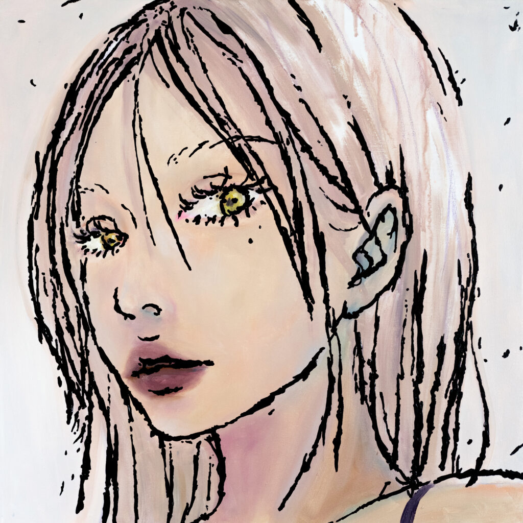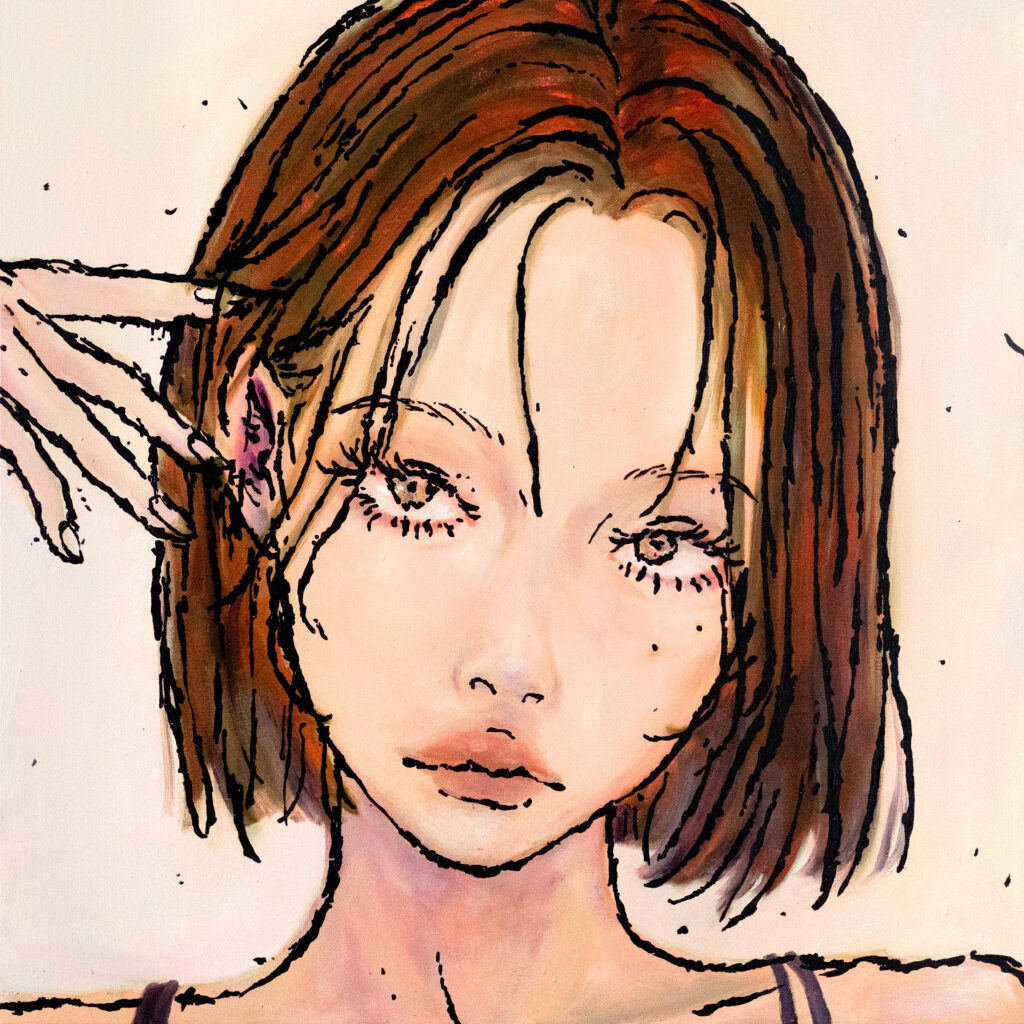 itabamoe’s visual style distances itself from idealization and consumption, articulating representations of women that embody self-determination. Through this visual language, her practice persistently interrogates contemporary modes of figuration and the systems through which they are consumed.